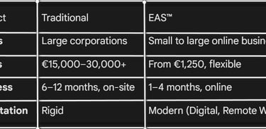 We are not a “certificate mill” — EAS™ helps build systems that work. Transparent pricing, industry expertise, full support.
