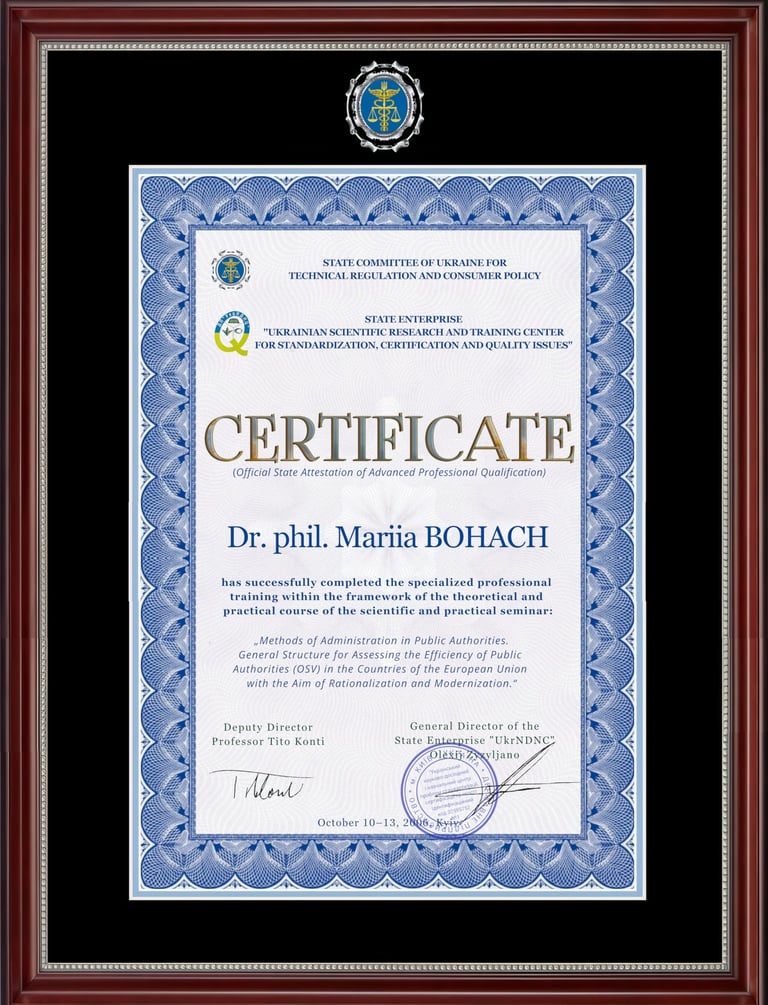 EXPERT CASE: Participation in the scientific-practical seminar "Administrative Methods in Government Authorities" under the personal leadership of Professor Tito Conti (Italy). Gaining knowledge directly from the Honorary President of the International Academy of Quality (IAQ) allowed for the verification of regional management approaches for compliance with global standards.
