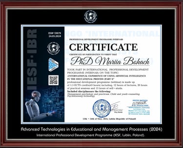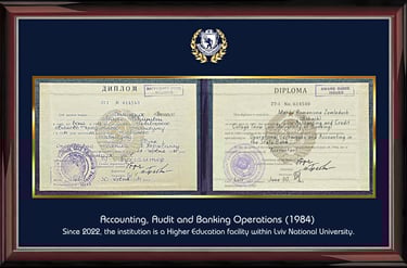 The head of EAS™, PhD Mariia Bohach, possesses a sound financial and economic education (specializing as an "Accountant-Auditor" – based on a specialized college, currently a Higher Education Institution of Banking profile, Lviv).