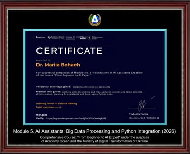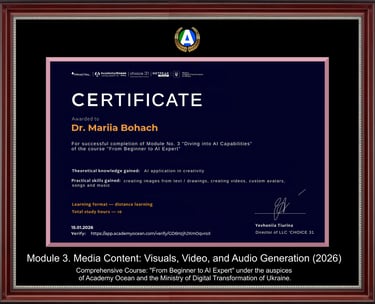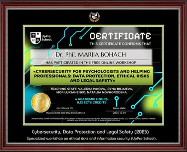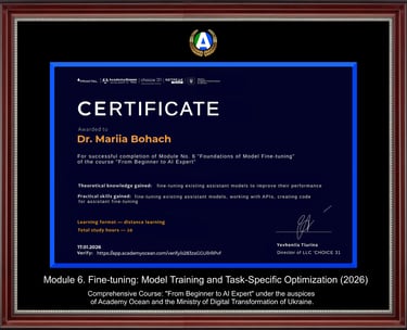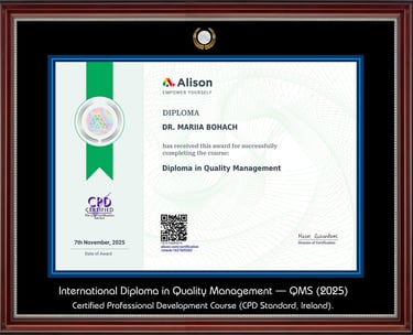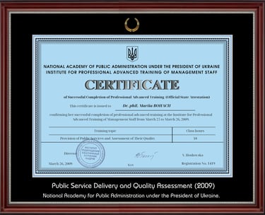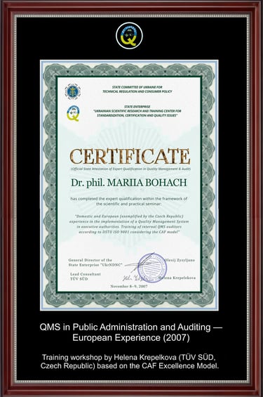 As a research-oriented practitioner, Mariia Bohach led the organizational implementation of Quality Management Systems (ISO 9001) in the public sector, serving as the Secretary of the Coordination Council and the working group under the Regional State Administration. Her further authorial project – "Control in the Management System" – evolved into a scientific and methodological manual, which was introduced as an official recommendation base for executive control bodies nationwide.