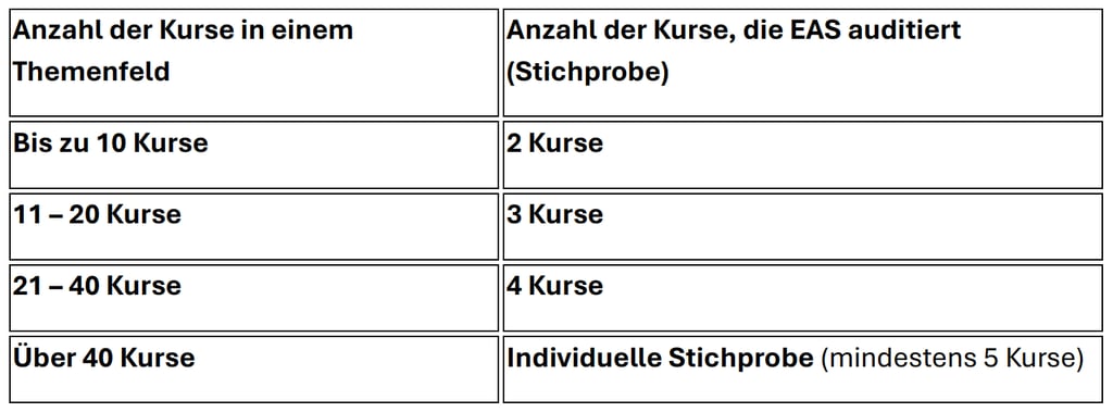 Audit-Umfang: Gemäß der Proportionalitätsregel werden 2 Kurse (je 1 pro Themenfeld) auditiert.