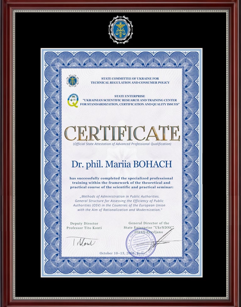 CASO ESPERTO: Partecipazione al seminario scientifico-pratico "Metodi di amministrazione nelle autorità governative" sotto la guida personale del Professor Tito Conti (Italia). L'acquisizione di conoscenze direttamente dal Presidente Onorario dell'Accademia Internazionale della Qualità (IAQ) ha permesso di verificare la conformità degli approcci gestionali regionali agli standard globali.