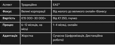 Наша компетентність ґрунтується на перевірених стандартах і багаторічній практиці. EAS™ пропонує: